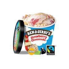 Aardbeiencheesecake ijs gevuld met stukjes aardbei en havermoutkoekjes